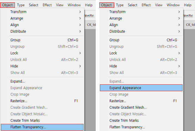 전체선택 > Obeject - Expand Appearance [한글판] 모양확장