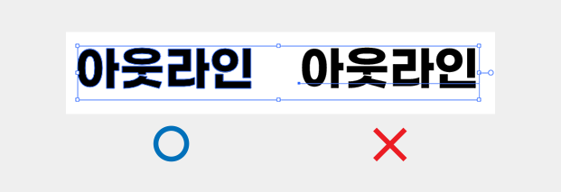 파일 내 모든 텍스트 및 선은 반드시 아웃라인 처리를 하여 윤곽선으로 변환해주시기 바랍니다. (패턴 및 숨김, 잠금된 텍스트 포함) 아웃라인이 안된 텍스트를 못 찾을 경우 > Ctrl + A (전체선택) 후 Ctrl + Shift + O 를 눌러 주시기 바랍니다.