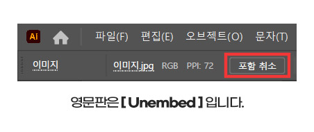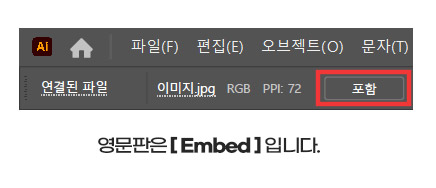 이때 포함(Embed) 버튼을 누르지 않은 이미지는 파일을 작업한 컴퓨터에서만 보이고 다른 컴퓨터에서는 이미지가 보이지 않습니다.
