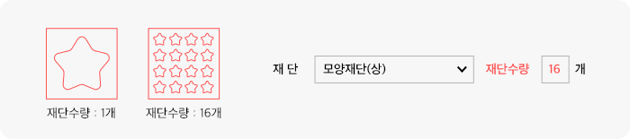 모양 재단은 재단되는 모양에 따라 반드시 개수를 입력해야 합니다.
