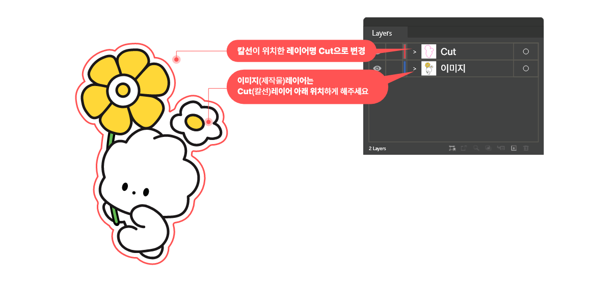 칼선은 따로 레이어를 생성하여 위치시키고 레이어명은 Cut으로 변경해주세요