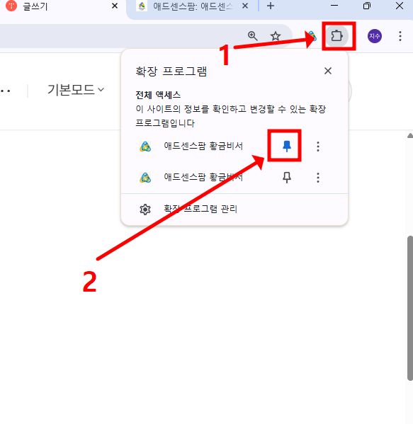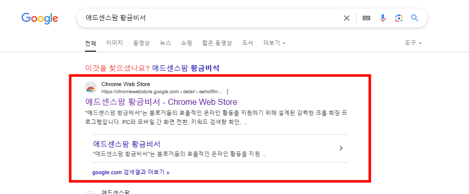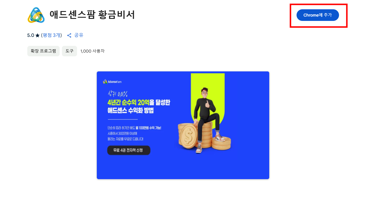 '애드센스팜 황금비서'를 검색하여 확장 프로그램을 추가하세요.