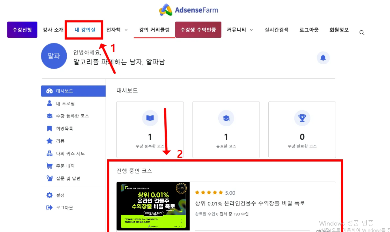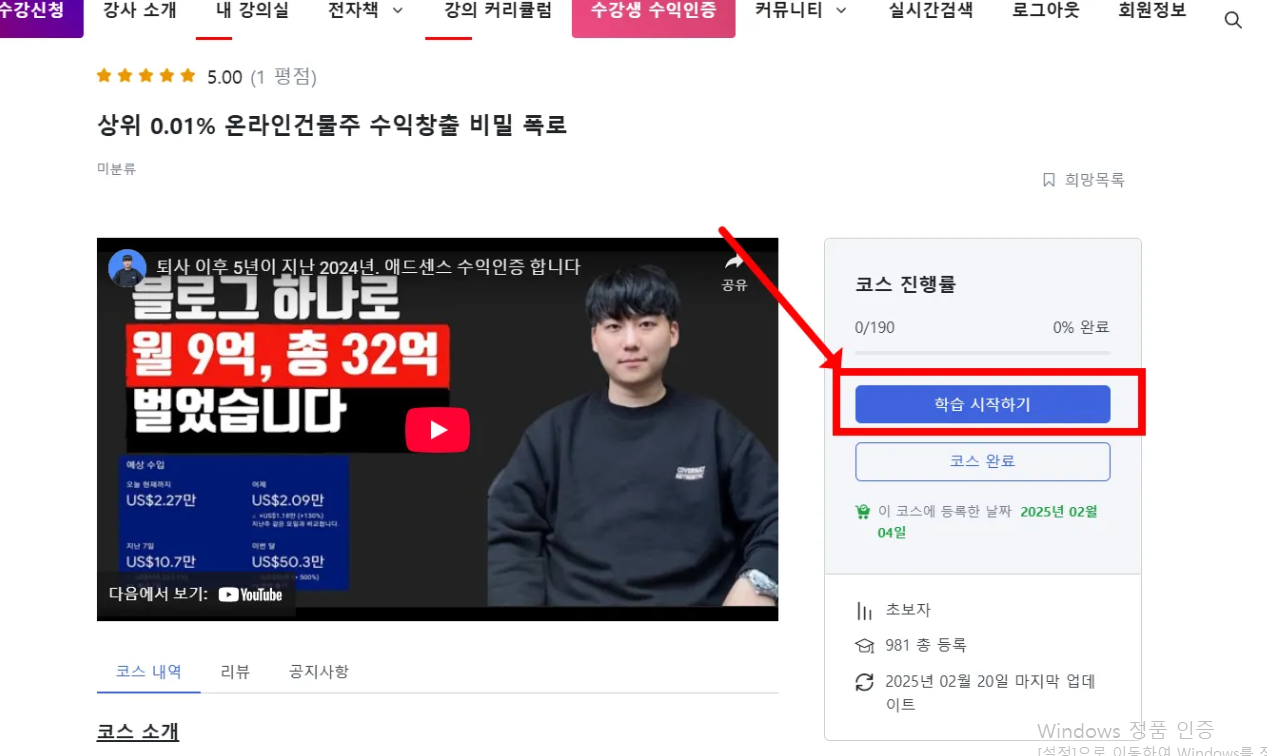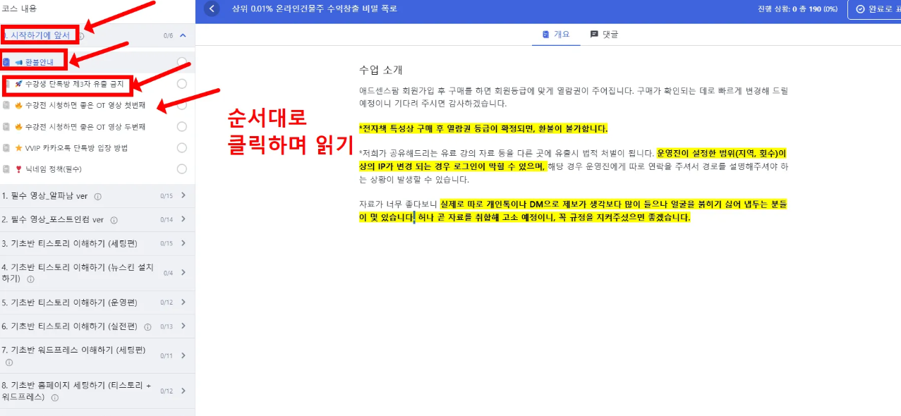 전자책 → 유료강의 → 수강생 안내문 → OT 영상부터 시청하시면 됩니다.