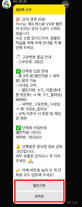 챌린지 강의 구매자는 아래 애드센스팜 채널톡(고객센터)로 별도 연락 부탁드립니다~!
