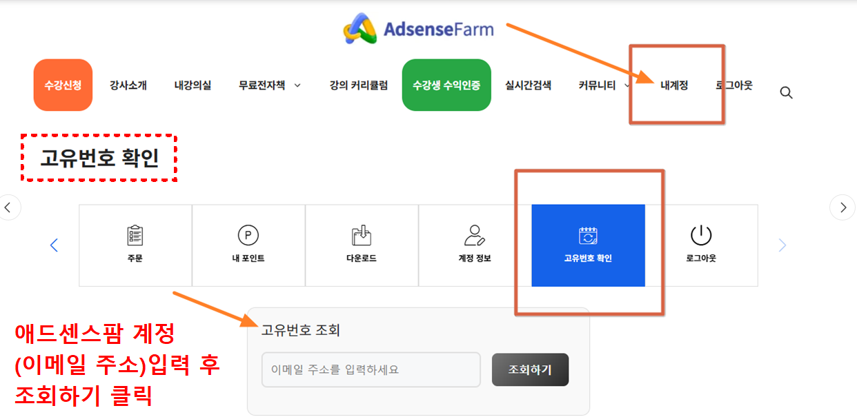 μ λμΌμ€ν μ¬μ΄νΈ β λ΄ κ³μ β κ³ μ λ²νΈ νμΈμμ μ΄λ©μΌ μ£Όμ(μ λμΌμ€ν κ³μ )λ‘ κ³ μ λ²νΈ μ‘°ν λλ λ¬Έμ, μΉ΄μΉ΄μ€ν‘ μλ¦Όν‘, λ©μΌ(μ λμΌμ€ν κ³μ )μμ νμΈ