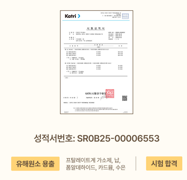 โข ์ด๋ฆฐ์ด์ ํ ๊ณต๊ธ์์ ํฉ์ฑ ํ์ธ(KC ์ธ์ฆ)์ ์๋ฃํ์ฌ ์์ฌํ๊ณ ์ฌ์ฉํ ์ ์์ต๋๋ค.