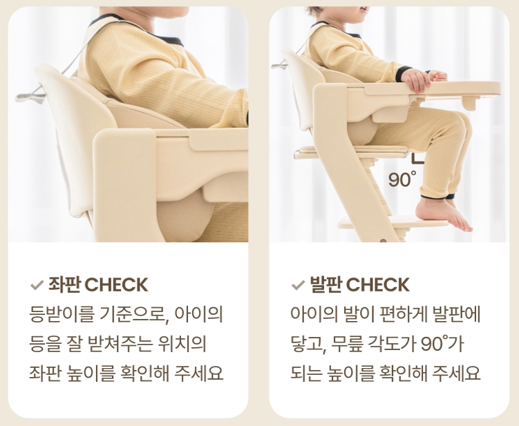 ๋ฐ์ด ํธํ๊ฒ ๋ฟ๊ณ ๋ฌด๋ฆ์ด ์ฝ 90ยฐ๊ฐ ๋๋๋ก ์กฐ์ ํฉ๋๋ค.