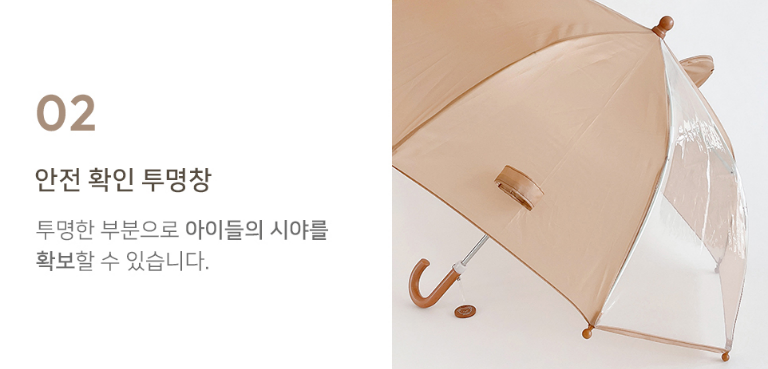 우산의 일부분이 투명한 소재로 제작되어, 비 오는 날에도 아이들이 앞을 가리지 않고 시야를 확보할 수 있어 사고를 예방합니다.