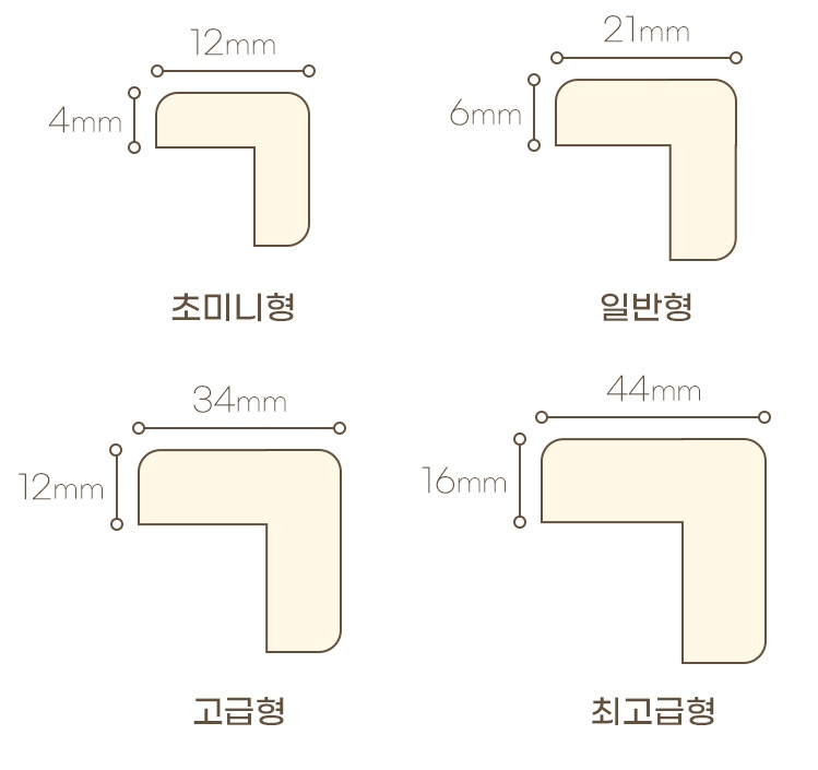 ๋๊ป: ์ด๋ฏธ๋(4mm) / ์ผ๋ฐ(6mm) / ๊ณ ๊ธ(12mm) / ์ต๊ณ ๊ธ(16mm)