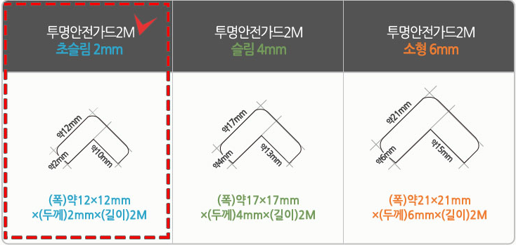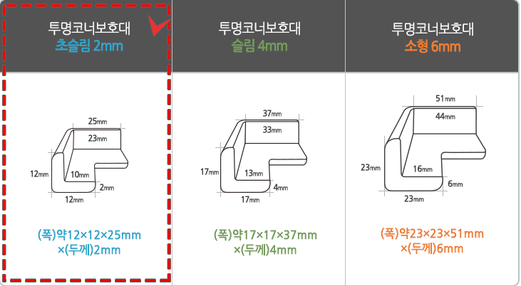 ใฑ์ํ ๋ฐํฌ ๋ชจ์๋ฆฌ๋ณดํธ๋ ์ฌ์ด์ฆ ์ ๋ณด