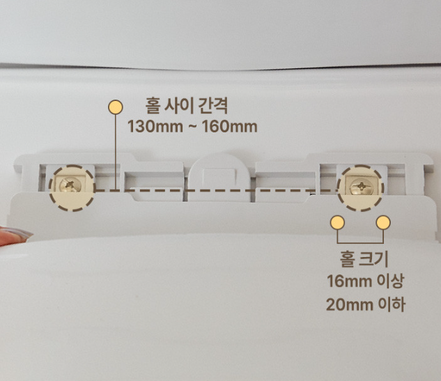 ํ ์ฌ์ด ๊ฐ๊ฒฉ (์ค์น ๊ฐ๋ฅ ๋ฒ์) | 130mm ~ 160mm | ๋ณ๊ธฐ ๊ณ ์ ํ ์ค์ฌ ๊ฐ ๊ฑฐ๋ฆฌ |