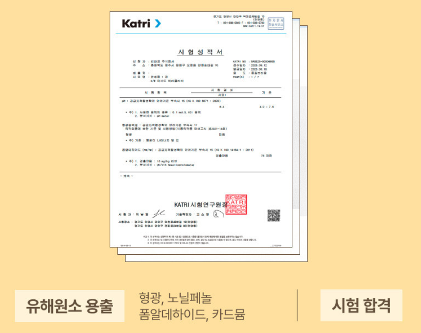 โข ํ๊ด๋ฌผ์ง์ ์ทจ์ฝํ ์ ์ ํผ๋ถ๋ฅผ ๋ณดํธํ๊ธฐ ์ํด **ํ๊ด๋ฌผ์ง์ด ๋ฏธ๊ฒ์ถ๋ ๋ฌดํ๊ด ํด๋ฆฌ์์คํฐ ์๋จ 100%**๋ฅผ ์ฌ์ฉํ์ต๋๋ค.