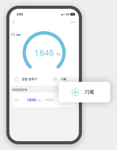 5. 앱 내에서 '기록' 버튼을 눌러 키, 머리둘레 등을 함께 저장합니다.