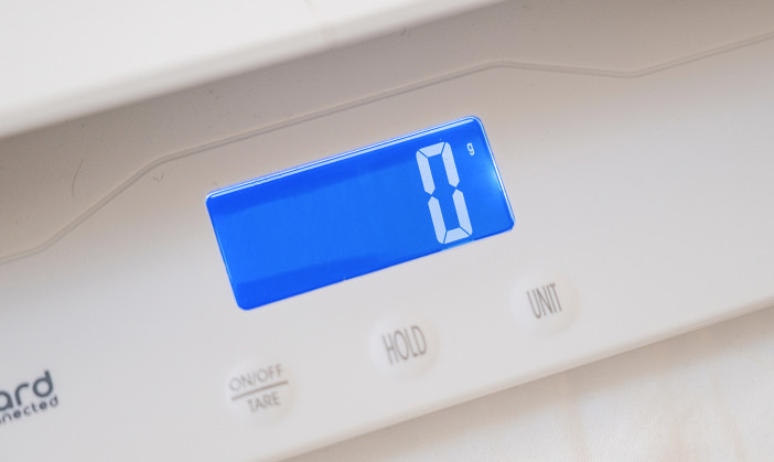 2. unit 버튼으로 단위(kg/g)를 설정하고, 필요시 수건 등을 깐 뒤 영점(Tare)을 맞춥니다.