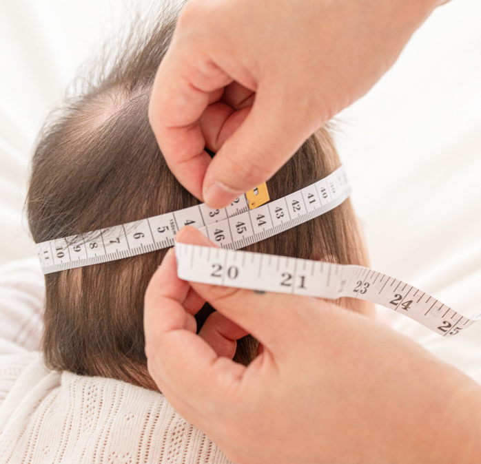 구성품에 포함된 줄자로 아이의 머리 둘레를 잴 수 있어요
