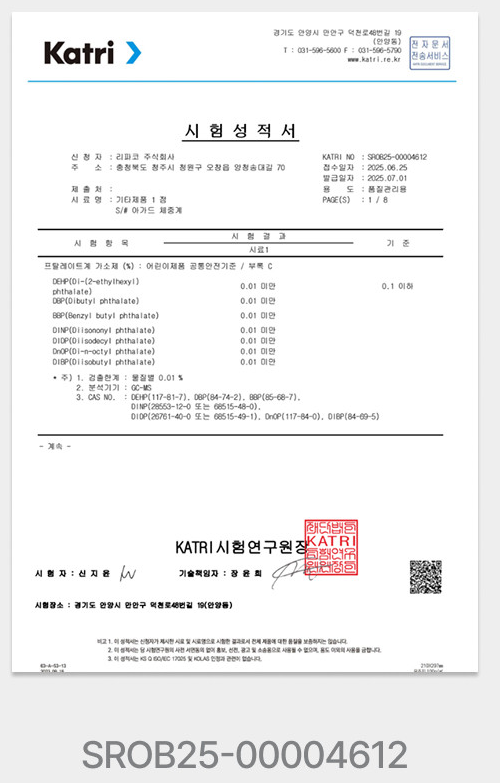 KC 유해물질 검사에서 적합 판정을 받은 안전한 제품이에요