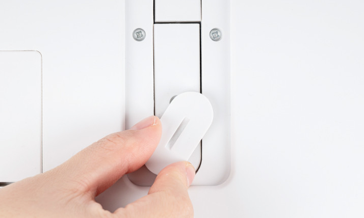 3. 체중계 바닥면(하단)의 **잠금장치(Lock)**를 돌려 본체와 트레이를 단단히 고정해 줍니다.