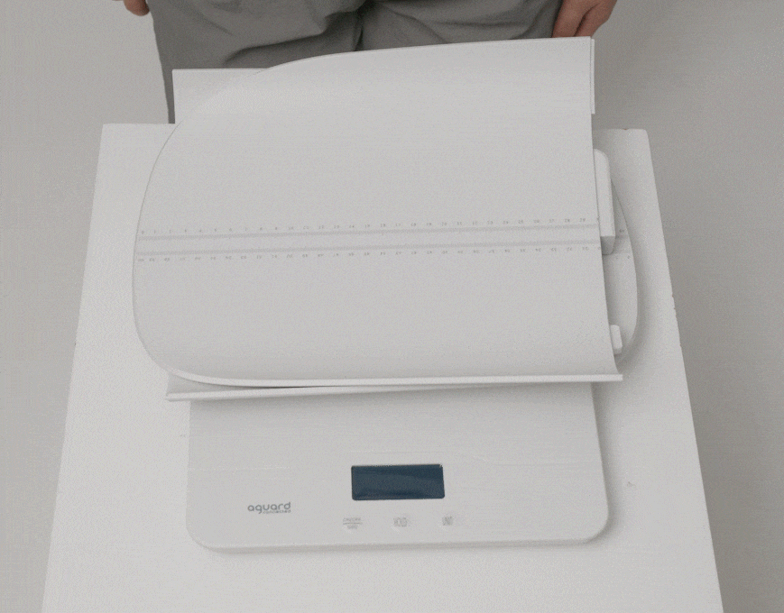 • Tare (영점 조절) : 아이를 눕힐 수건이나 담요를 먼저 올린 후 '0g'으로 시작 무게를 맞출 수 있어, 순수한 아이의 몸무게만 잴 수 있습니다.