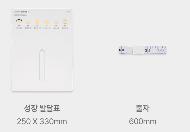 • 추가 구성품 : 성장 발달표 (250 x 330mm), 머리 둘레 줄자 (600mm)