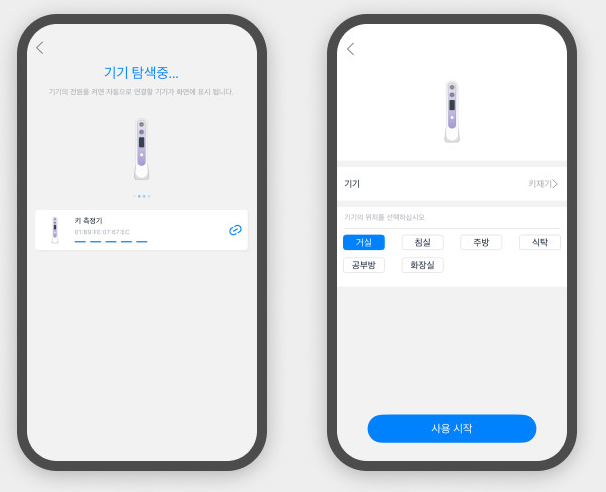 โข ํธ๋ํฐ์ ๋ธ๋ฃจํฌ์ค์ ํค์ฌ๊ธฐ์ ์ ์์ ์ผ ํ, ์ฑ ์๋จ์ [+] ๋๋ [์ฅ์น ์ถ๊ฐ] ๋ฒํผ์ ๋๋ฌ **'ํค ์ธก์ ๊ธฐ'**๋ฅผ ์ ํํฉ๋๋ค. (โป ์ฐ๊ฒฐ ๊ธฐ๊ธฐ๋ฅผ ์ฐพ์ง ๋ชปํ๋ค๋ฉด ์ฑ์ ๋ธ๋ฃจํฌ์ค ๋ฐ ์์น ์ ๊ทผ ํ์ฉ์ด ํ์ฑํ๋์ด ์๋์ง ํ์ธํด ์ฃผ์ธ์. ๋ก๊ทธ์ธ ํ์ ์ฅ์น ์ถ๊ฐ๊ฐ ๊ฐ๋ฅํฉ๋๋ค.)