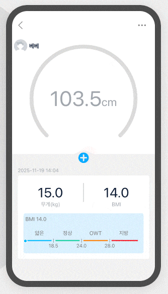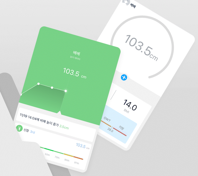 โข ์ฑ ๋ด์์ ์์ด์ ๋ชธ๋ฌด๊ฒ, BMI ์ง์ ๋ฑ์ ํจ๊ป ๊ด๋ฆฌํ ์ ์์ผ๋ฉฐ, ๊ธฐ๊ฐ๋ณ ์ฑ์ฅ ์ถ์ด(๊ณก์ ) ๊ทธ๋ํ๋ฅผ ์นด๋ ํ์์ผ๋ก ํ๋์ ํ์ธํ ์ ์์ต๋๋ค.