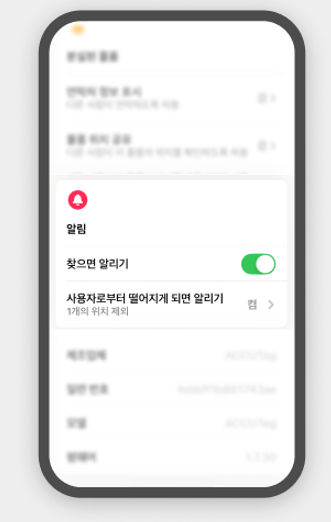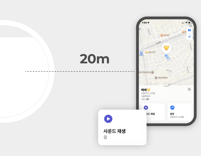 ํ๊ทธ๊ฐ ๋ธ๋ฃจํฌ์ค ๋ฒ์(์ฝ 20m ์ด๋ด)์ ์์ ๋, iPhone์ ์ฑ โ โ์ฌ์ด๋ ์ฌ์โ์ ๋๋ฌ์ฃผ์ธ์.