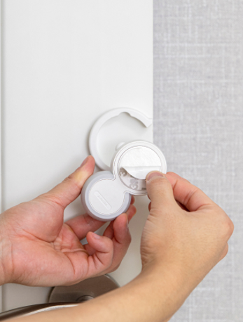 스마트 회전 도어스토퍼는 문을 열 때 자동으로 작동하여 35mm의 세이프 존을 확보함으로써, 아이나 반려동물의 손 끼임 사고를 예방하고 충격을 흡수하는 안전 제품입니다.