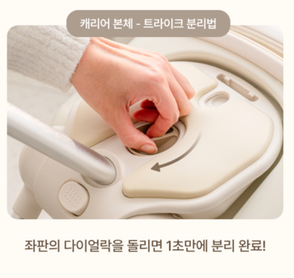 원터치 분리: 버튼 하나로 캐리어와 트라이크를 쉽게 분리하거나 결합할 수 있습니다.