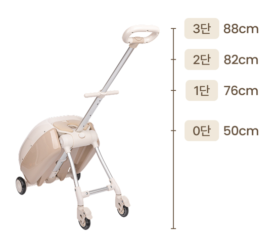 핸들 높이 조절: 핸들 0단 50cm, 핸들 1단 76cm, 핸들 2단 82cm, 핸들 3단 88cm