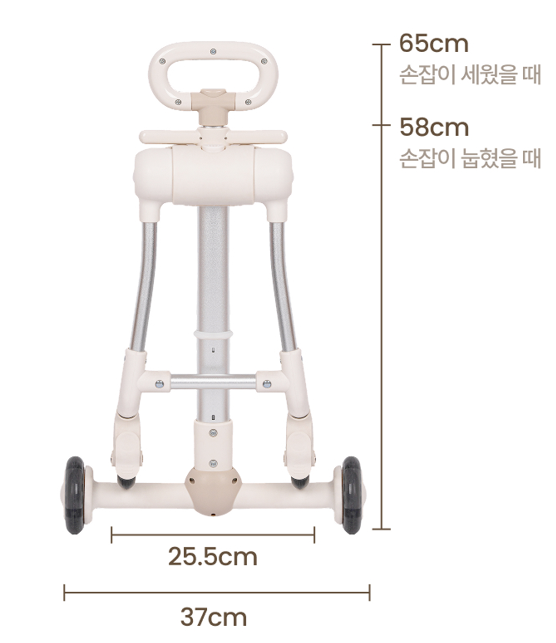 3단계 핸들 조절: 부모님의 키에 맞춰 손잡이 높이와 각도를 3단계로 조절할 수 있습니다.