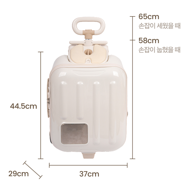 캐리어 단독: 37cm(폭) x 29cm(두께) x 44.5cm(높이)