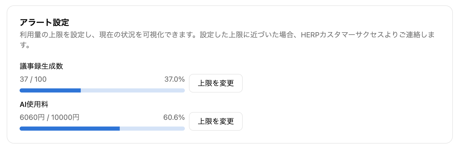 上限に近づいたらHERPカスタマーサクセスよりご連絡します。