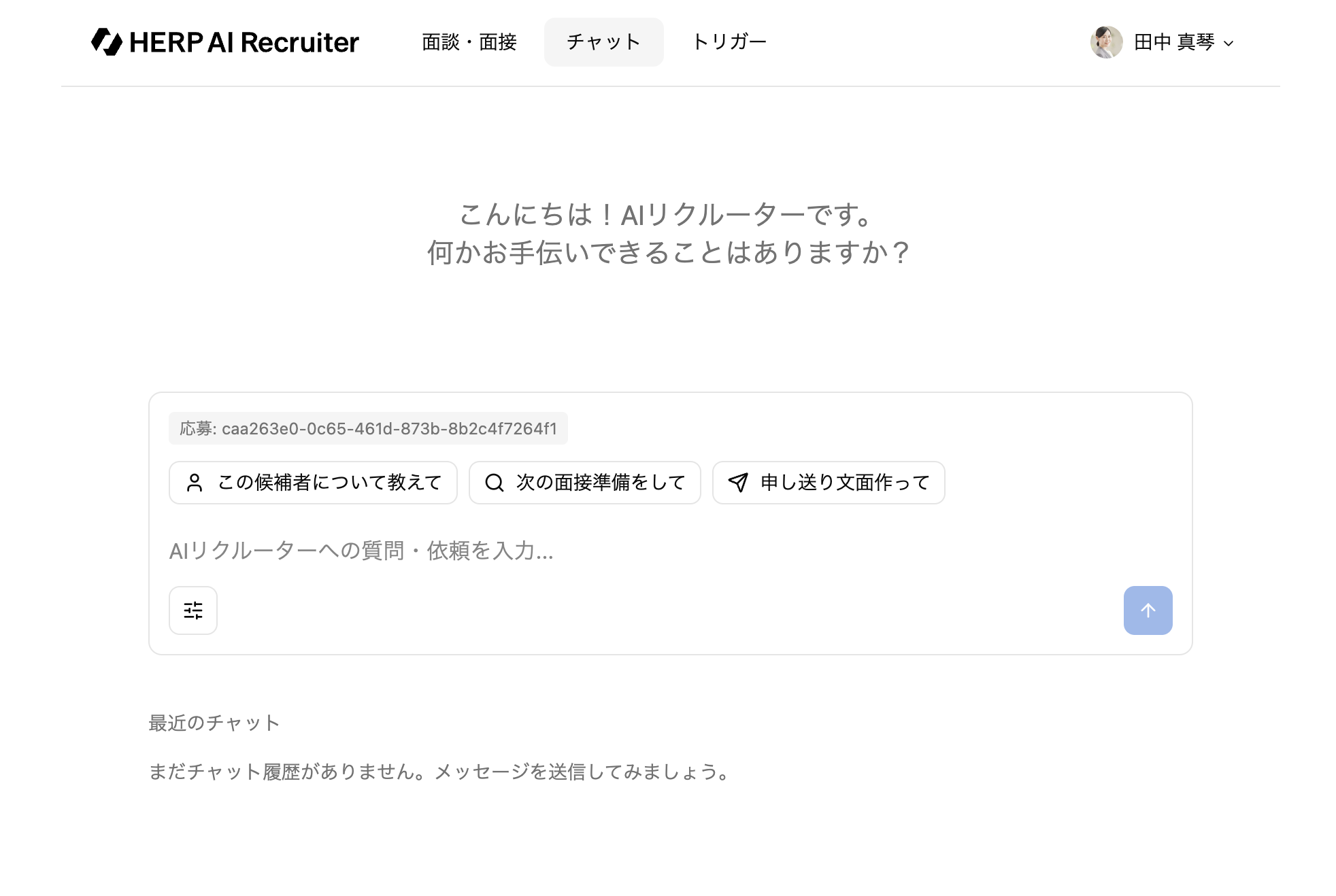 HERP AI Recruiterのチャット画面が新しいタブで開き、自然言語でHERP AI Recruiterに依頼することができます。