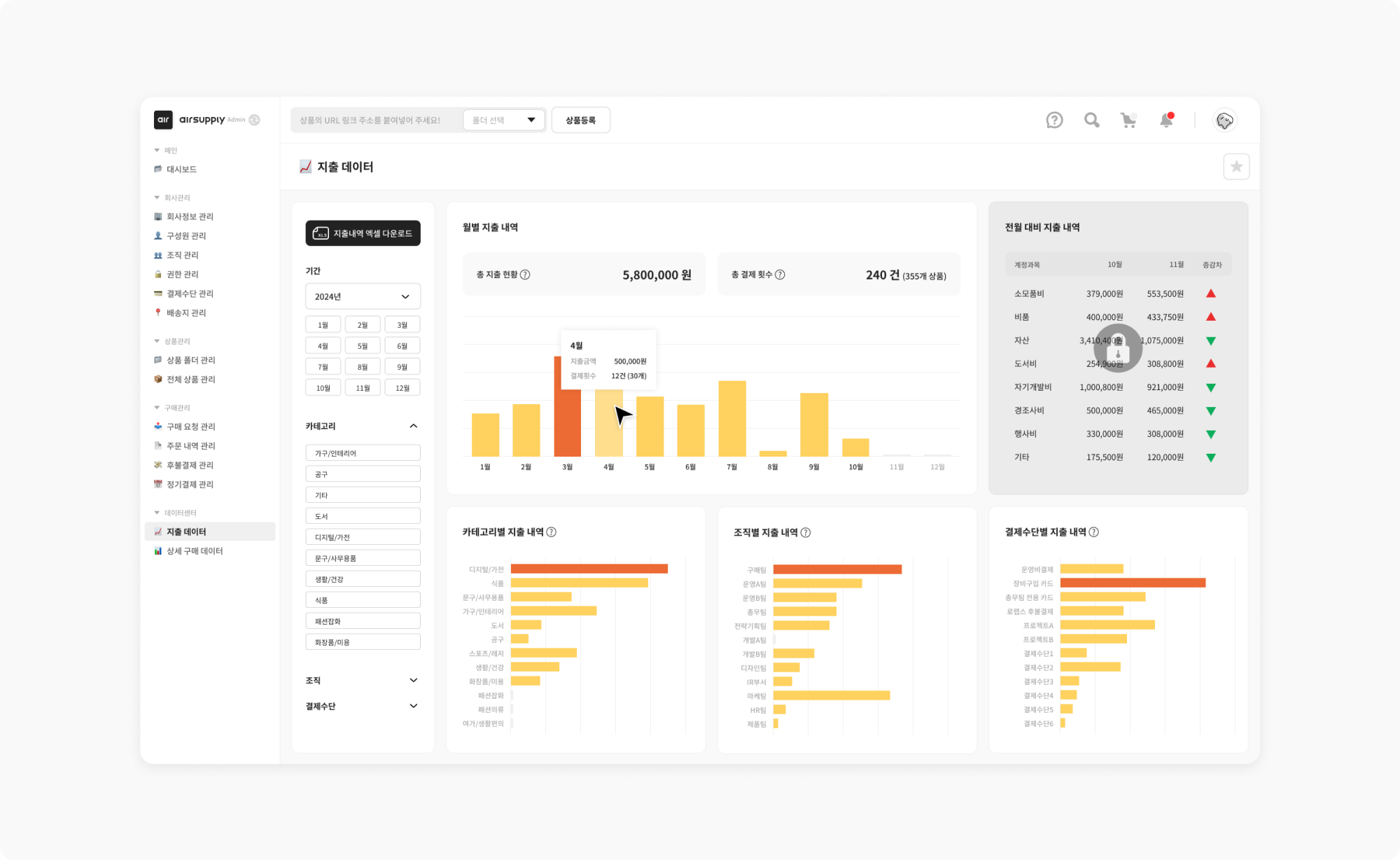 어떤 부서에서 가장 많이 지출했는지, 이번 달에 자주 구매한 상품은 무엇인지 데이터센터에서 쉽게 확인하고 정산에도 활용할 수 있는 방법을 알아볼까요?