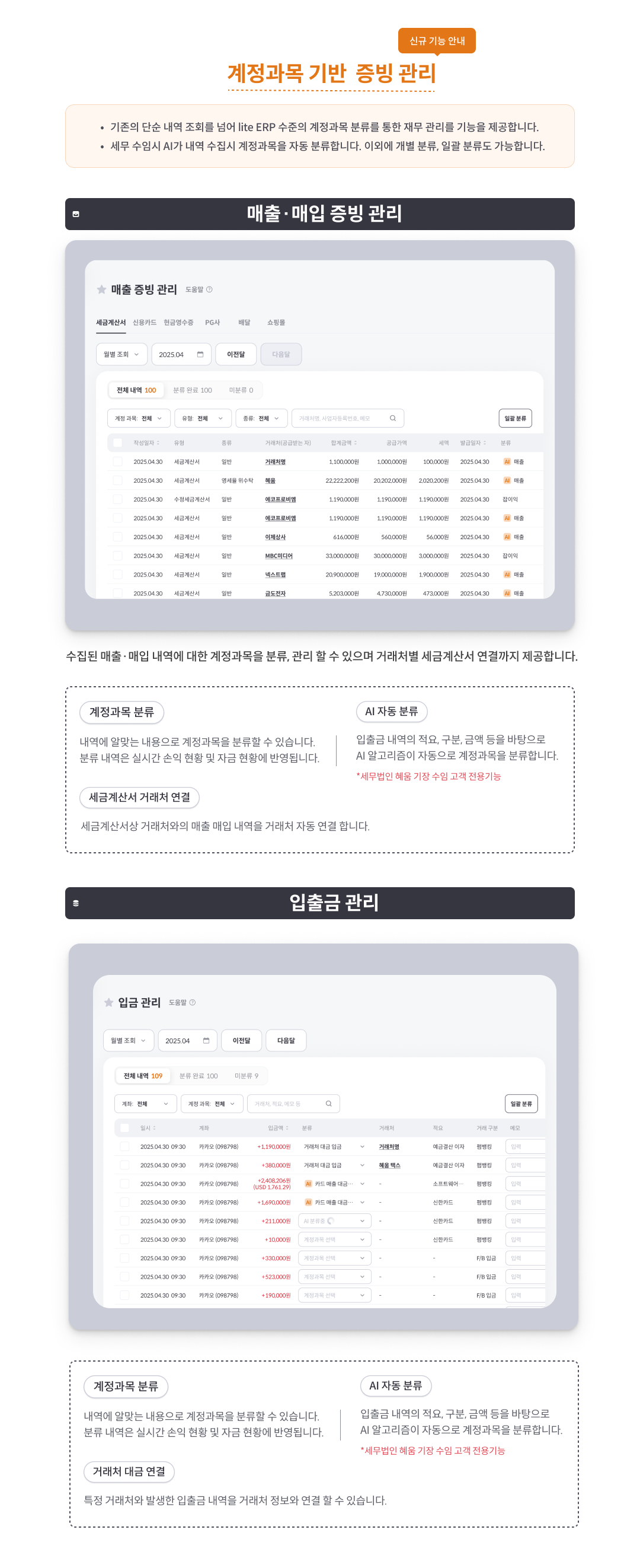 신규 보고서, AI 계정과목 분류 등 경리 신규기능 출시 안내