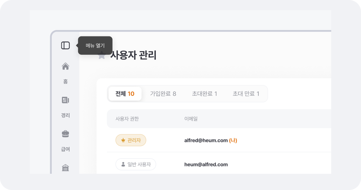 메뉴 접기/펼치기 기능이 제공됩니다.