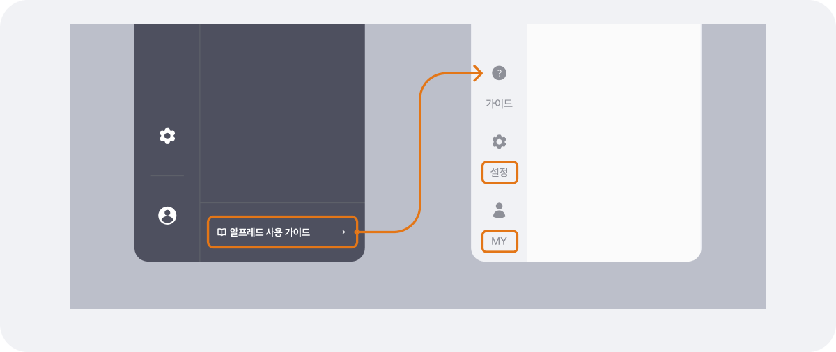 알프레드 가이드 이동 버튼이 메뉴에 고정되어 표시됩니다.