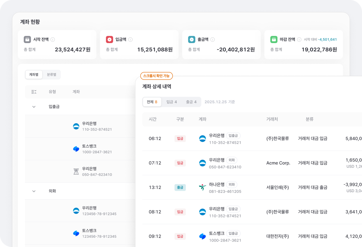 매일 회사의 입출금 현황을 빠르게 파악하고 싶은 분