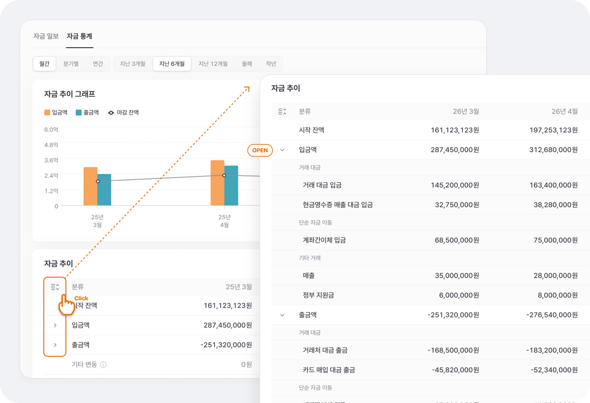 월별·기간별 자금 흐름을 한눈에 확인하고 싶은 분
