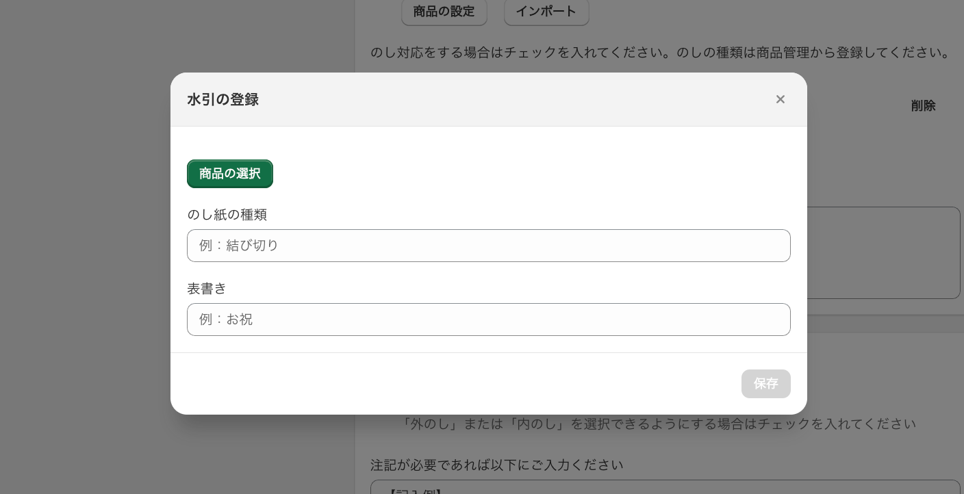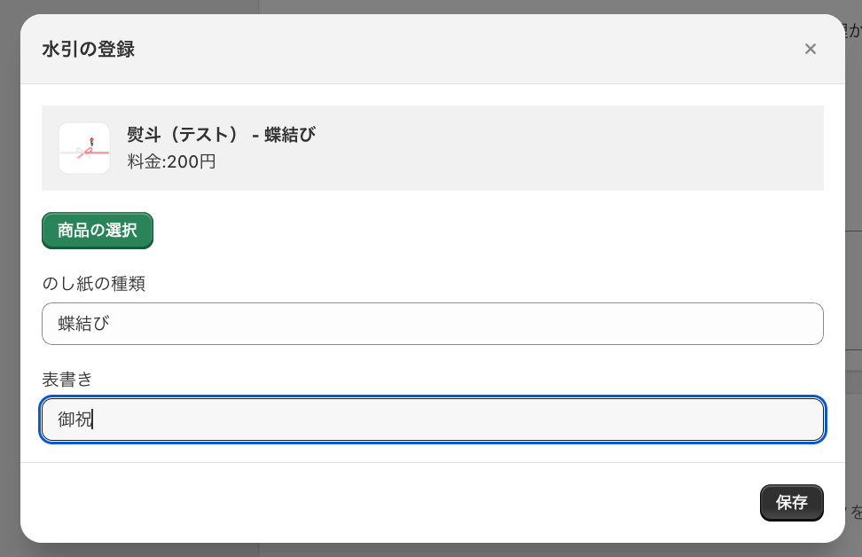 のし紙の種類と表書きを登録(空欄でも可) >保存をクリック
