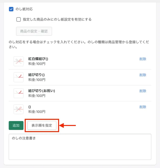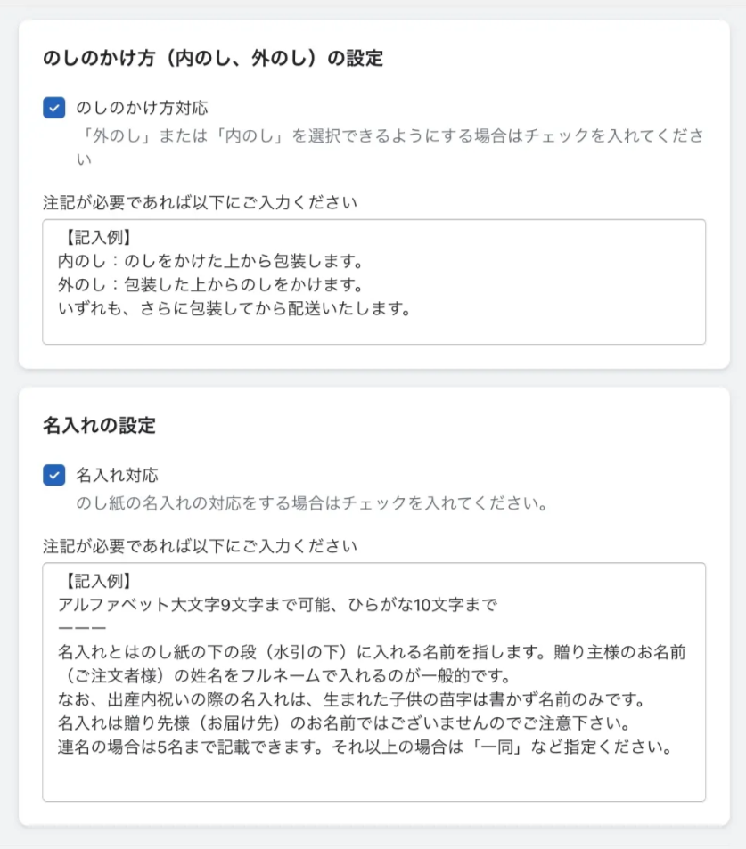 本ページではのし紙・名入れの設定方法をご案内します。