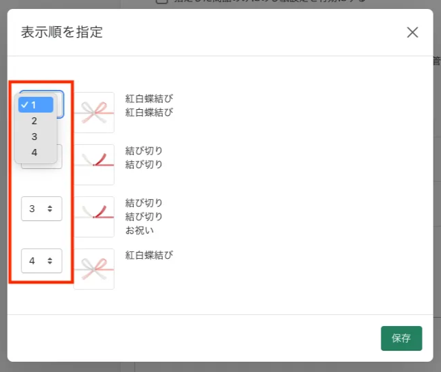 表示順> プルダウンで表示順を選択 >保存を押す