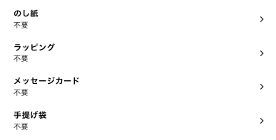 以下の「ギフトオプションの項目」および「不要」の文言はアプリの仕様上テキスト変更ができません。