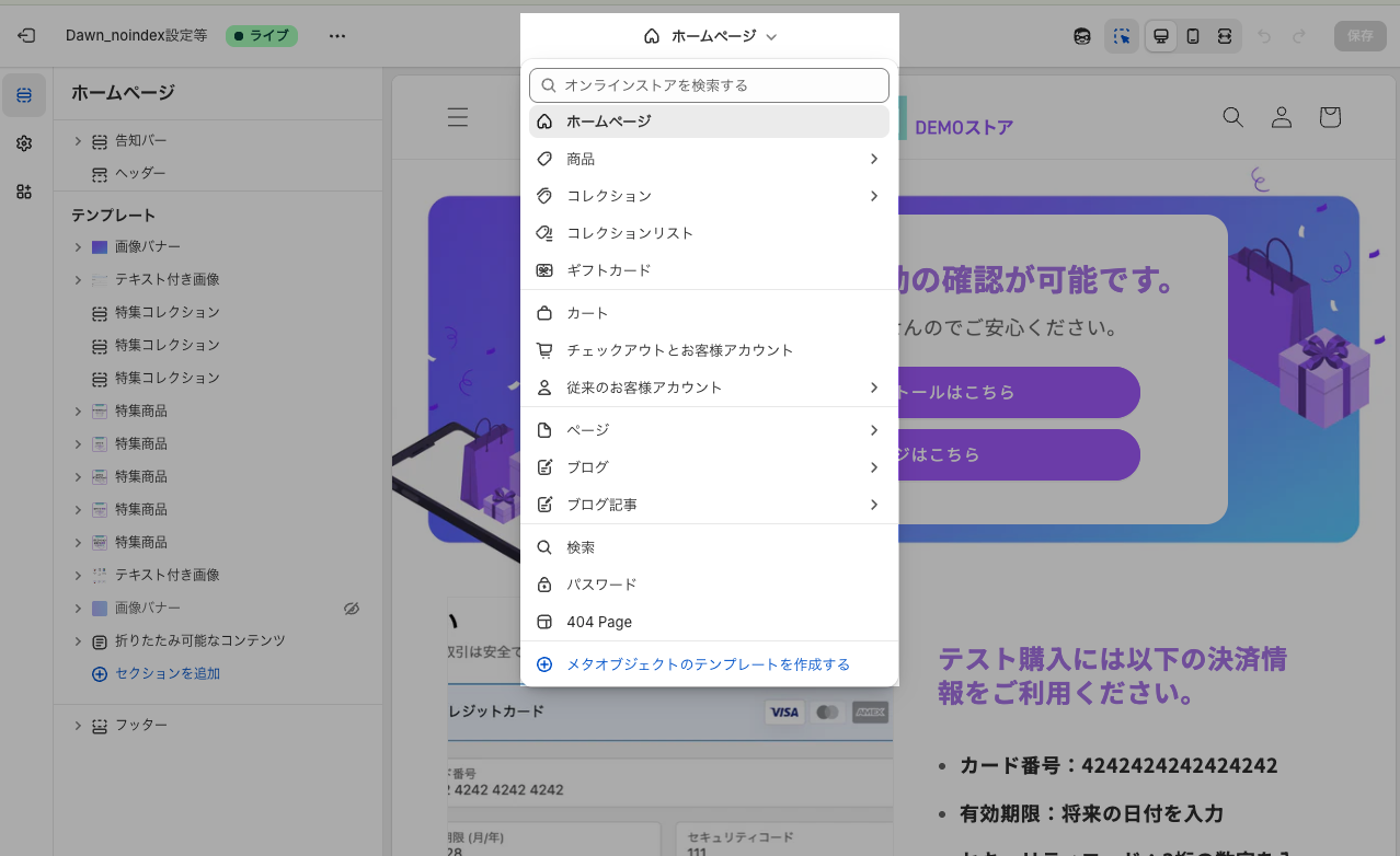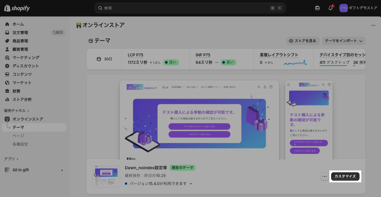 Shopify管理画面 > オンラインストア > テーマ > カスタマイズに進む