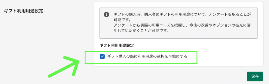 ギフトの購入時、購入者にギフトの利用用途について、アンケートを取ることが可能です。