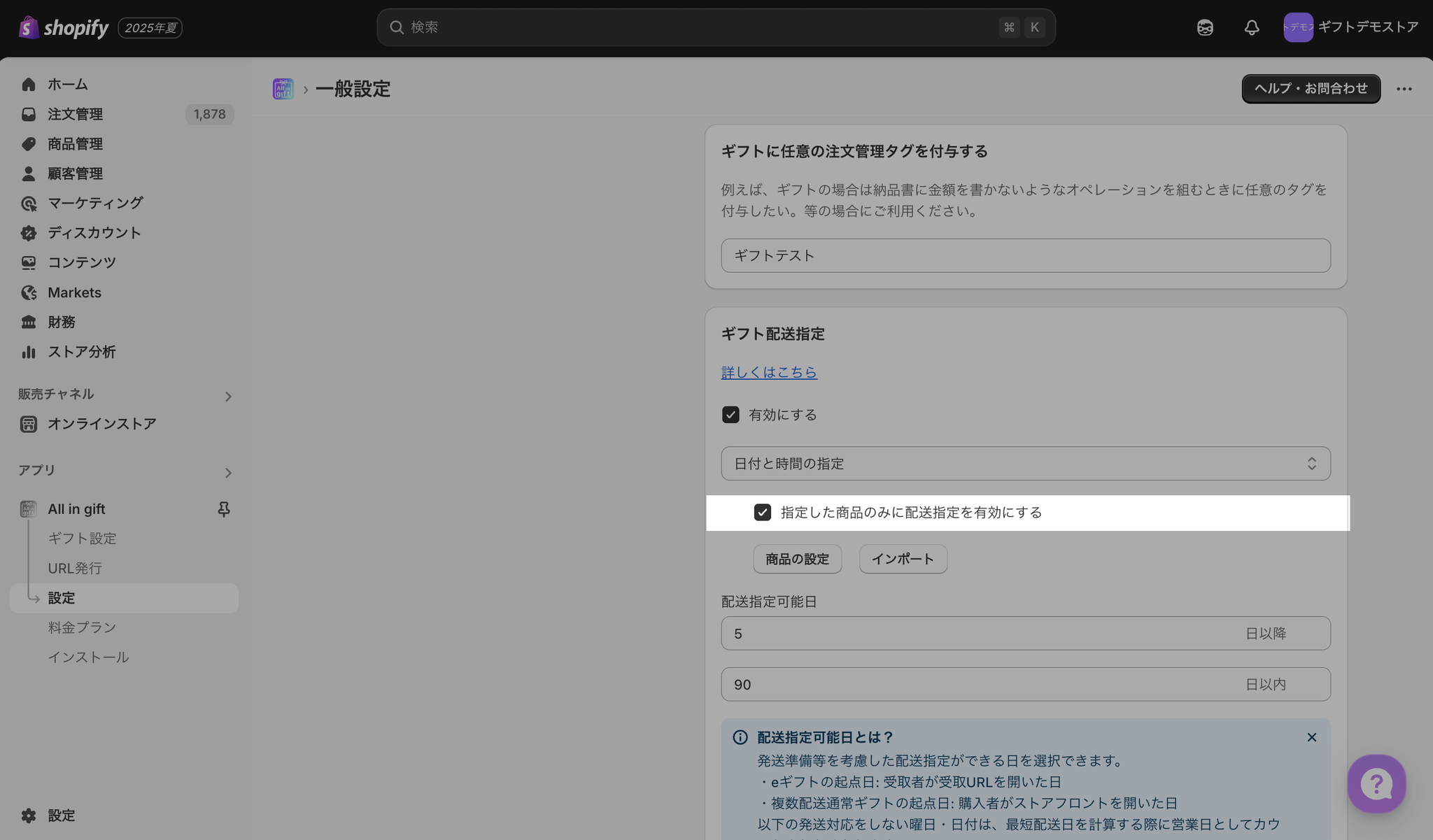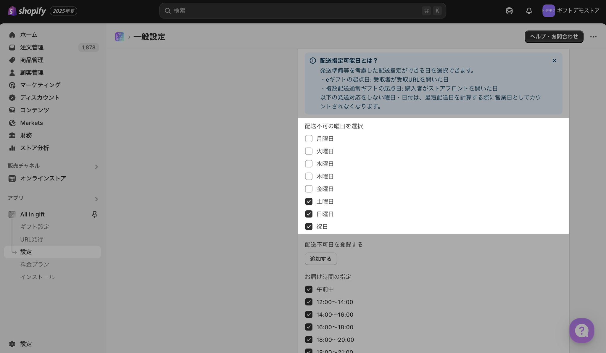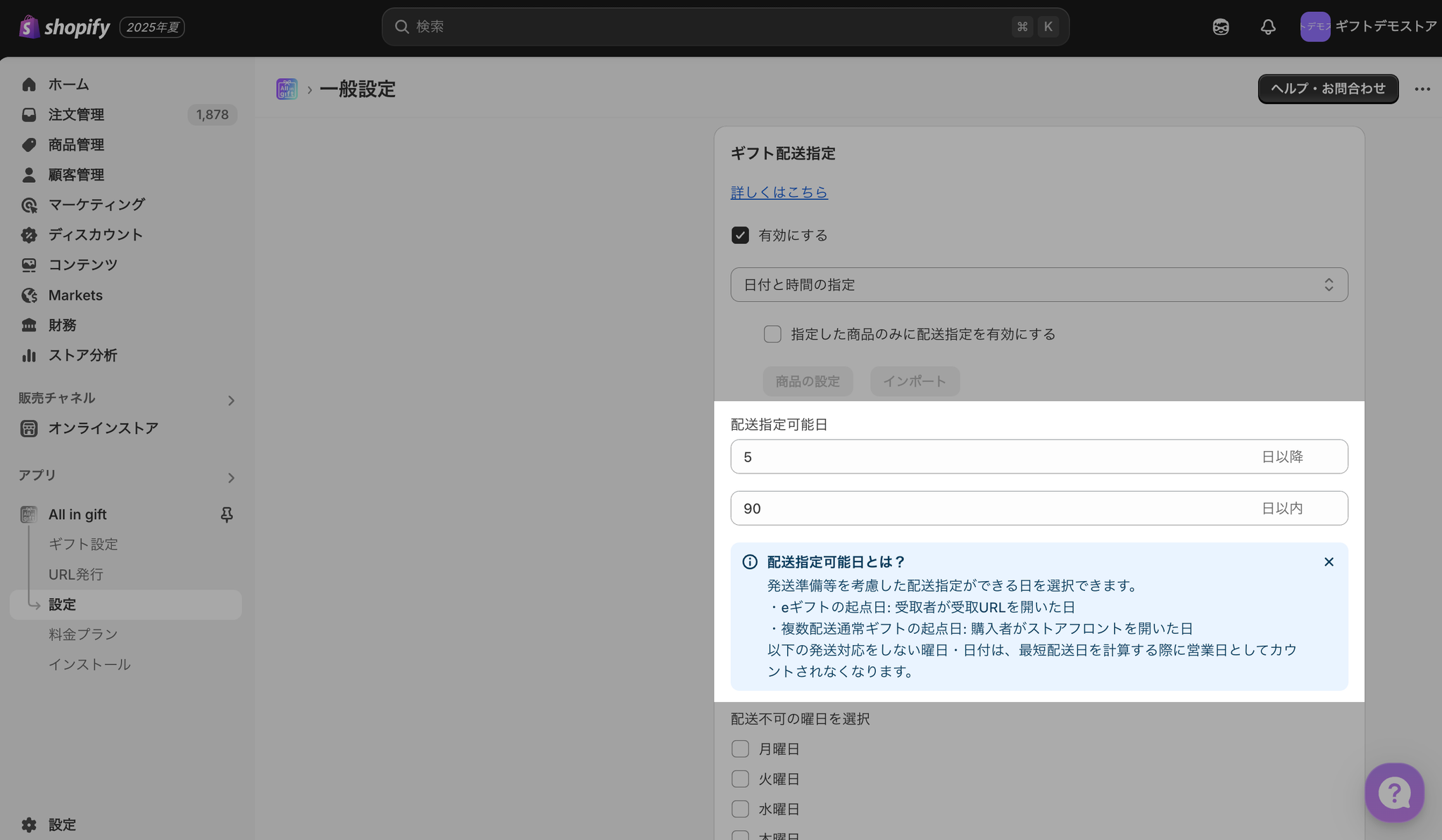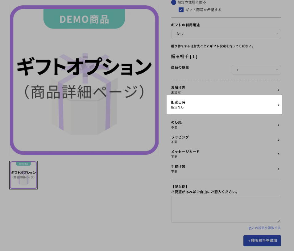 PROプラン(かつ複数配送機能ON)の場合、通常ギフトでも配送日時指定が利用可能です。
