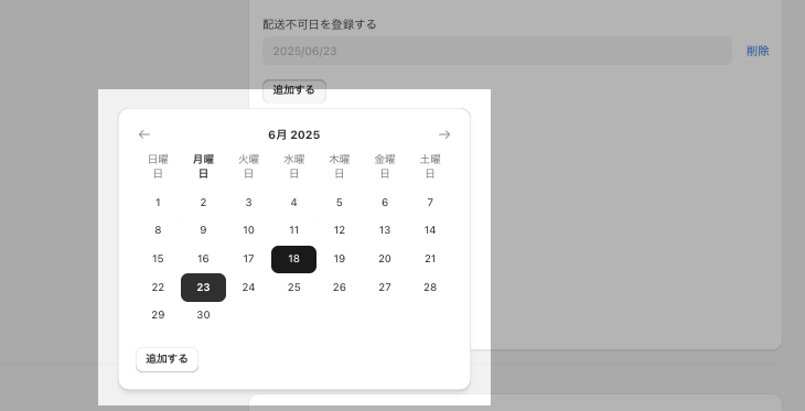 指定した商品のみに配送指定を有効にするにチェックを入れる