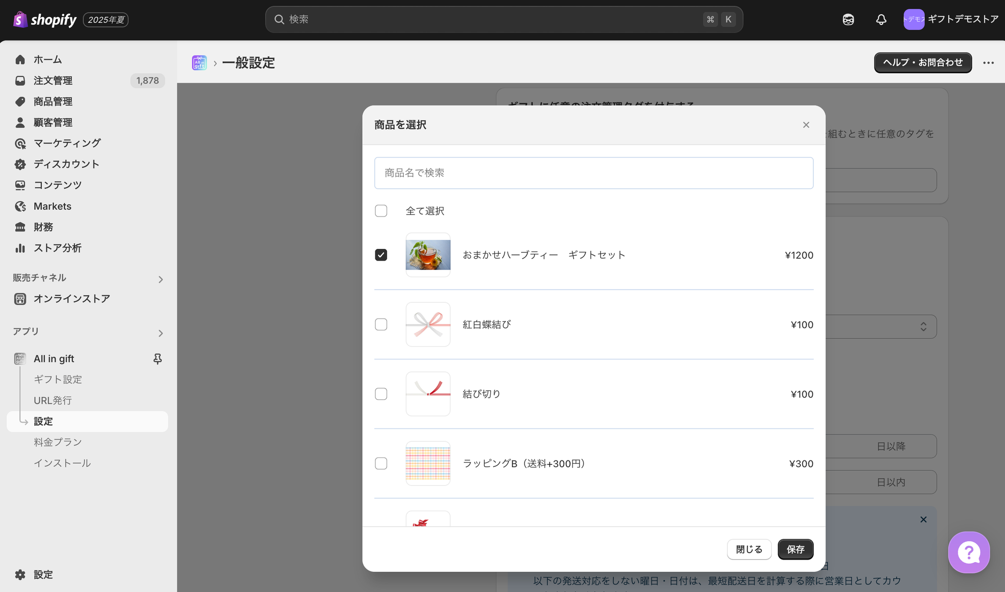 アプリ > All in gift > 設定 > ギフト配送指定 >