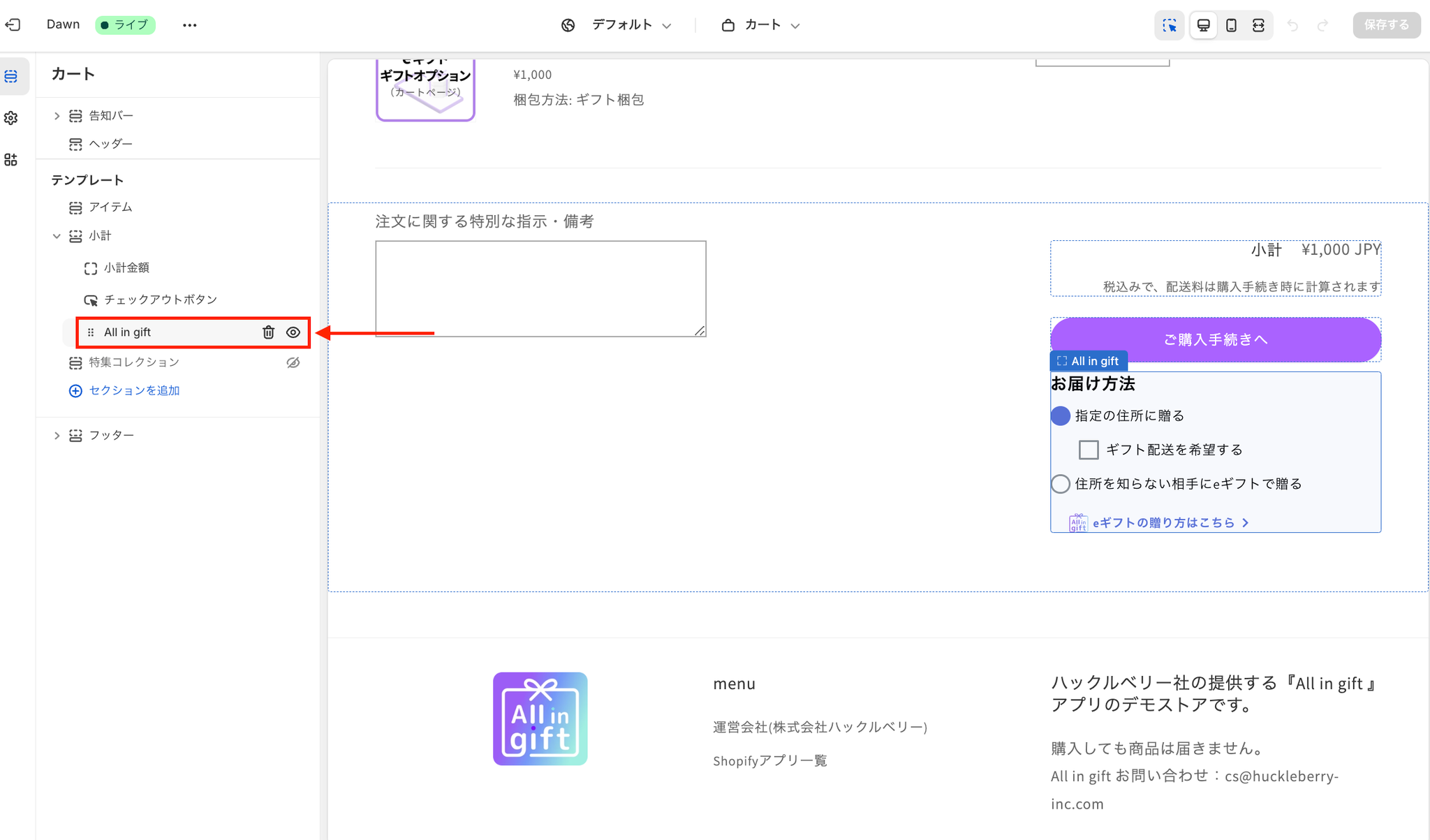 All in gift を実装しているページを選択