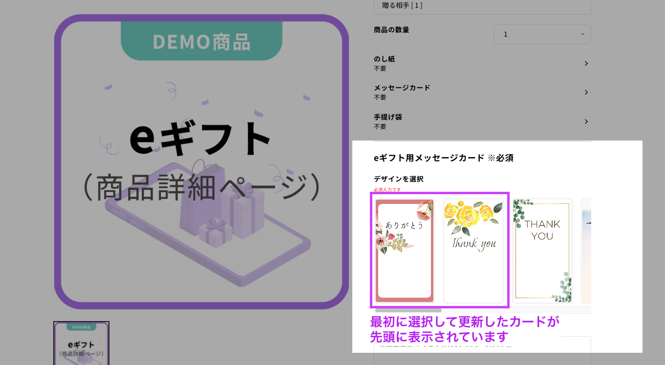 順番を確定させる 上記の操作を繰り返すことで、更新ボタンを押した順にストアフロントへ表示されます。